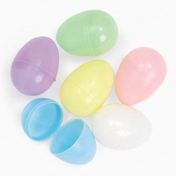 - Box of 144 Plactis Easter eggs. You can open them up and put prizes in them for an exciting easter egg hunt or scatter them around your home for some easter home decor.